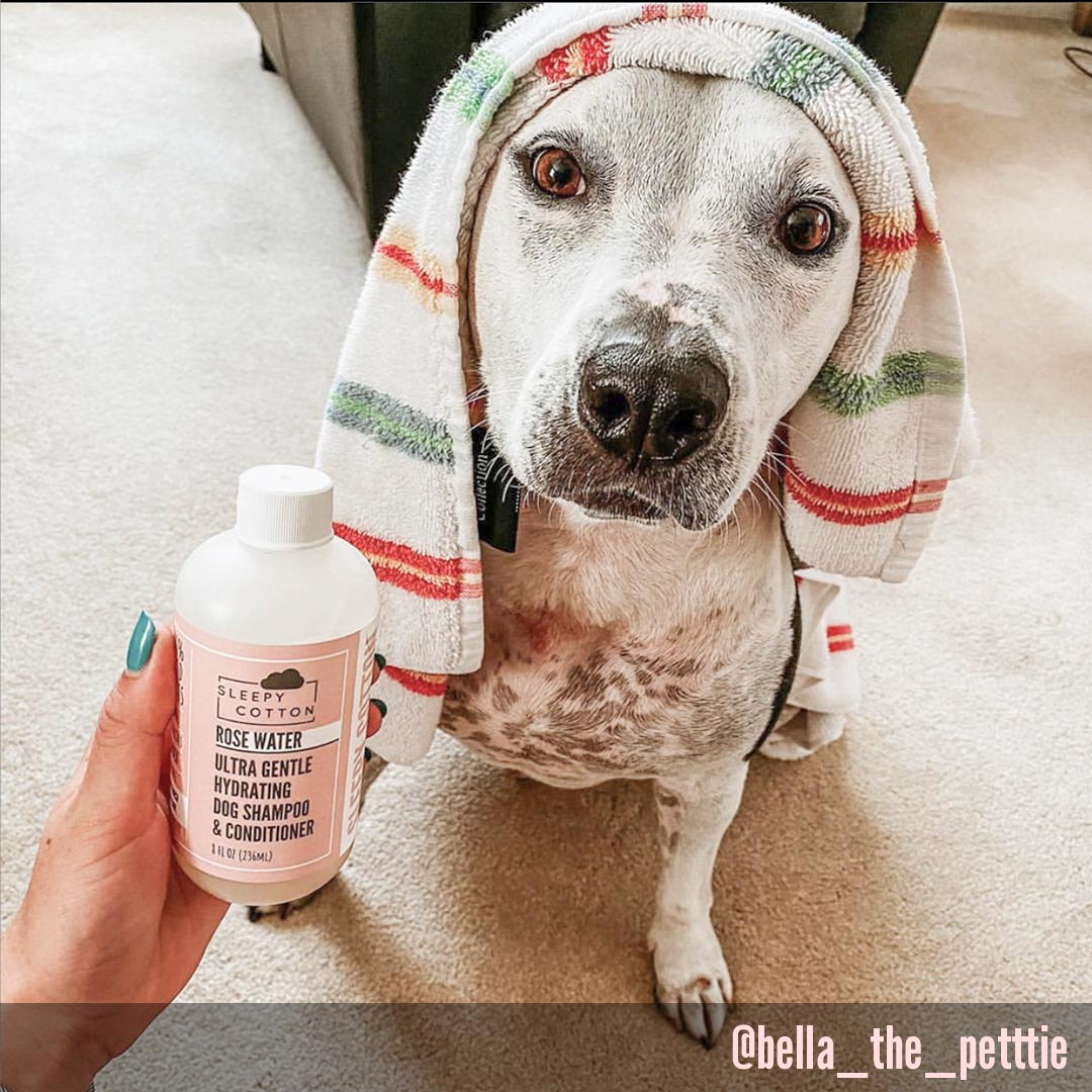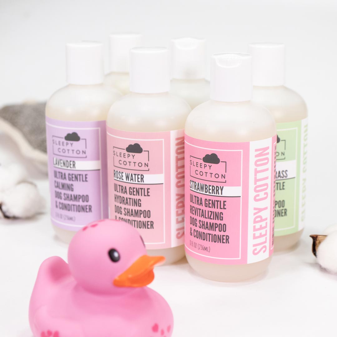 It is important to understand how every dog has sensitive skin. Dog’s skin is only 3 to 5 cells thick; whereas a humans is between 10 to 15 cells thick. Sleepy Cotton Ultra Gentle Dog Shampoo is perfectly formulated for dog’s sensitive skin. Our foaming agents are extracted from coconut and sugar. No SLS or SLES. No harsh chemicals are added. All ingredients are 100% natural.